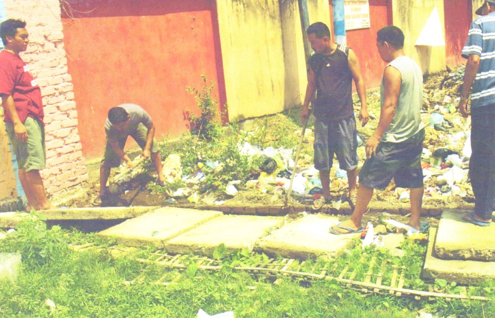 Residents of Duncan Bosti cleaning a blocked drainage on April 13.