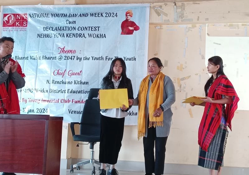 Under the theme, “My Bharat; Viksit Bharat @2047; By the Youth, For the Youth,” National Youth Week Festival cum Declamation Contest was held at WDVCCA conference Hall, Wokha on January 12. The programme organised by Young Imperial Club Funded NYKS, Wokha, was graced by N Renchano Kithan, Senior SDO, District Education Officer In-Charge, Wokha Nagaland as the chief guest.