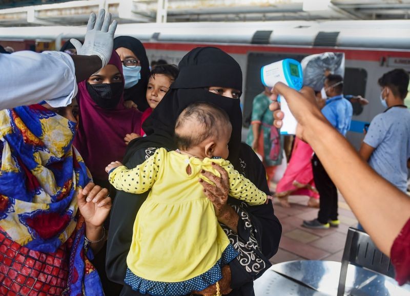 Mumbai: A BMC health worker does thermal screening of a passenger for COVID-19 test, at Dadar railway station in Mumbai, Thursday, Aug. 5, 2021. (PTI Photo)
