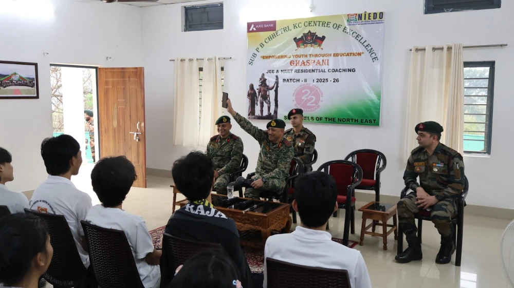 During the visit, he interacted with students at the Centre of Excellence (NIEDO), including Subedar P B Chhetri, a Kirti Chakra awardee, where candidates are preparing for competitive examinations such as JEE and NEET. He reviewed academic preparedness, infrastructure and facilities, and interacted with students and faculty.