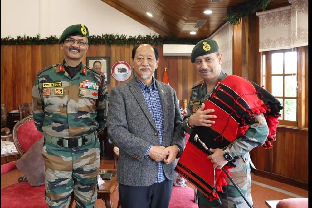 Nagaland 5th December 2024 Director General of Assam Rifles, Lt Gen Vikas Lakhera, AVSM, SM, called on the Nagaland Governor La Ganesan and Chief Minister, Neiphiu Rio in Kohima on December 5. (Photo Courtesy: HQ IGAR (N))