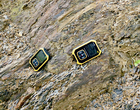Handheld radiation detectors placed on shale formations during a radioactive mineral survey conducted by the Department of Geology and Mining. (Photo Courtesy: DGM AAR 2025-26)
