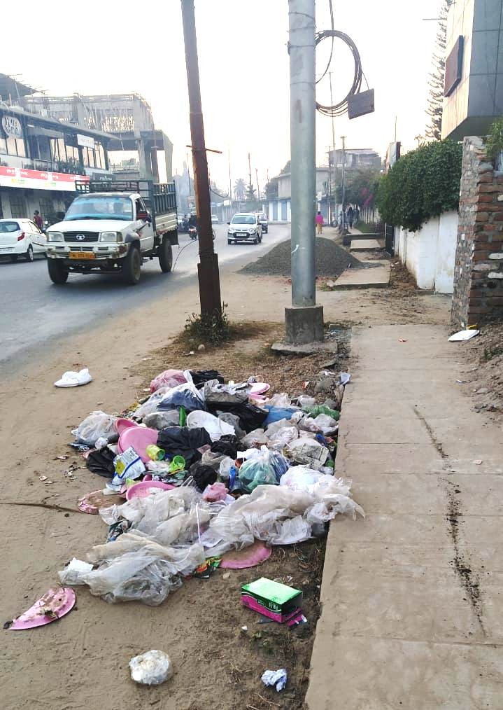 A pile of garbage lying uncleared since December 26 in Duncan Basti, Dimapur. According to residents, the bags of waste were thrown out from moving vehicles by unknown persons. Despite multiple requests by the residents, the Dimapur Municipal Council’s daily waste collection vehicle has not picked up the garbage till date. (Morung Photo)