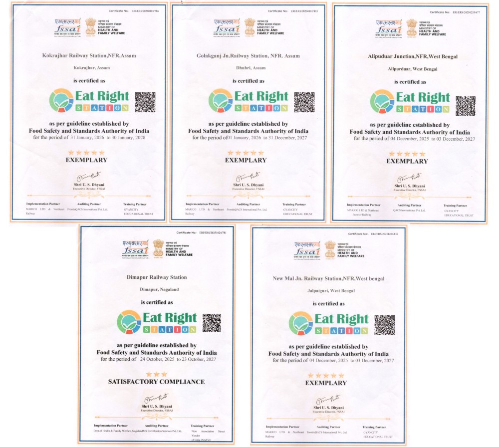 The “Eat Right Station” initiative forms part of FSSAI’s nationwide movement to promote safe, healthy and sustainable food practices under the “Eat Right India” campaign. Northeast Frontier Railway reiterated its commitment to continuously enhancing passenger amenities and ensuring the availability of quality, safe and hygienic food across its stations.
