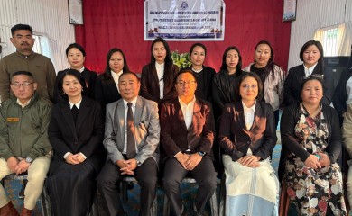 Mokokchung Disaster Management Team demonstrating first aid during disaster awareness programme conducted by the Mokokchung Disaster Management Team of Civil Defence & Home Guards under the initiative of Deputy Controller, Civil Defence and District Commandant, Home Guards, Watilemba at Jubilee Memorial School, Mokokchung on August 19. The Civil Defence personnel briefed and demonstrated to the students on emergency methods of rescue, first-aid and the use of fire extinguishers. (DIPR Photo)