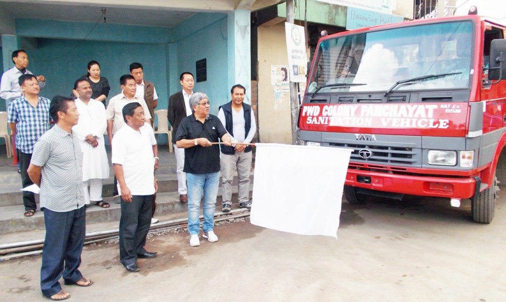 The PWD Colony Panchayat sanitation vehicle was formally flag off this morning by parliamentary secretary for law & justice, land revenue and labour & employment Dr. Neikiesalie (Nicky) Kire at the Upper PWD Resting Shed Kohima.