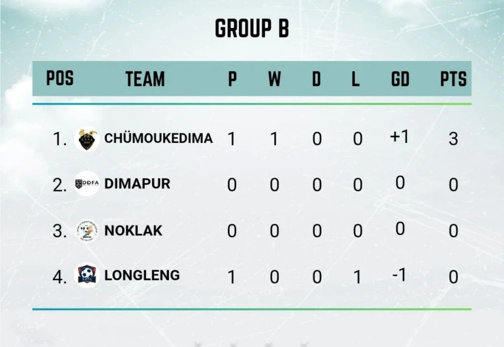 In the second match, Chümoukedima edged Longleng 1-0 in a tightly contested game. The lone goal came early, with Katoho finding the net in the 8th minute. Chümoukedima held on for the remainder of the match to take all three points and secure a clean sheet.