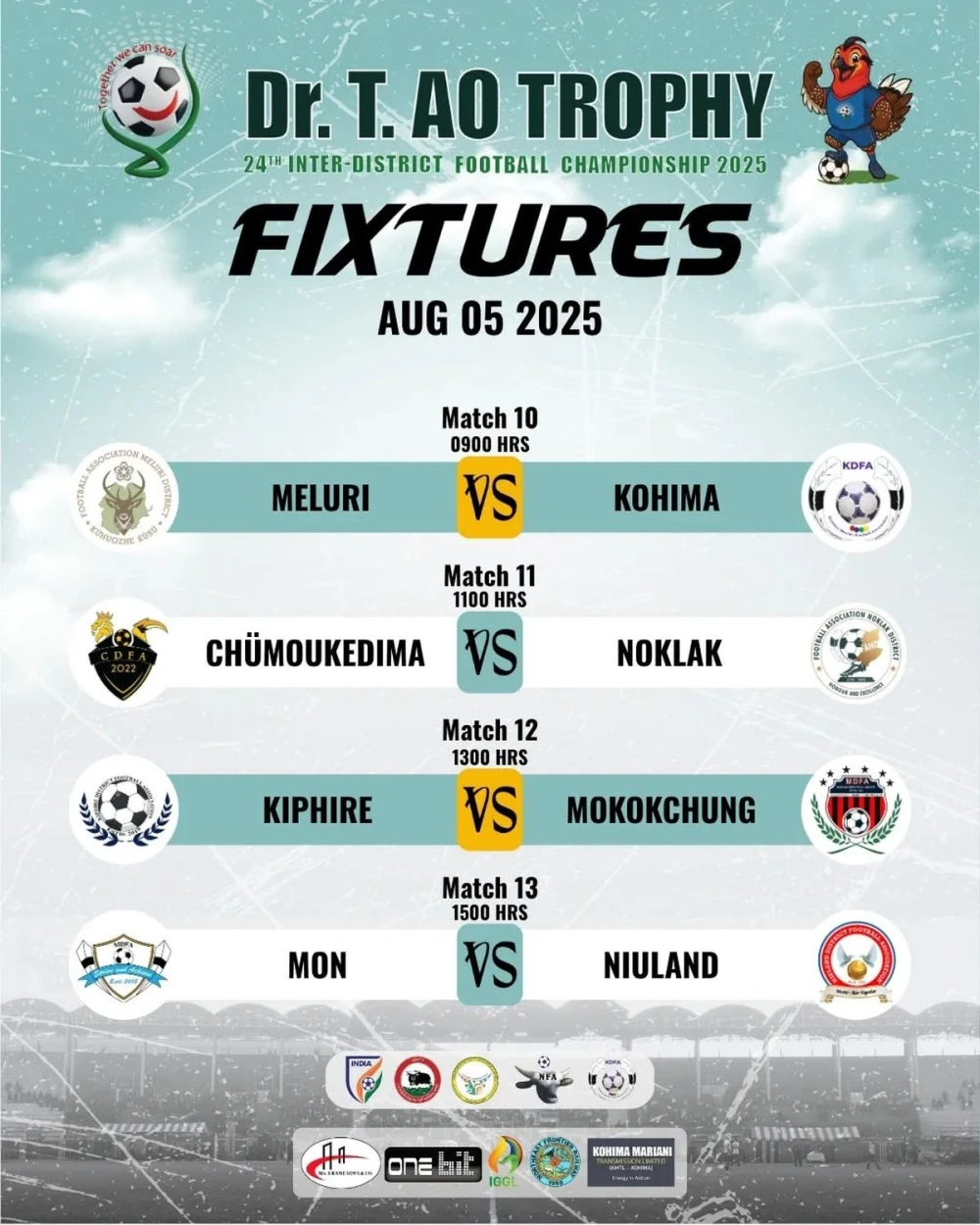 Niuland, Dimapur, Phek, and Tuensang recorded victories in their respective matches on Monday at the ongoing Dr T Ao Trophy 2025 Inter-District Football Tournament at the Indira Gandhi Stadium here.