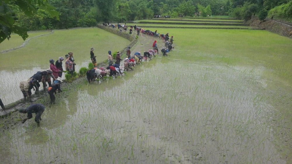 Amid the ongoing monsoon season, farmers engage in seasonal agricultural activity by transplanting paddy in Kohima district. (Morung Photo/Chizokho Vero)
