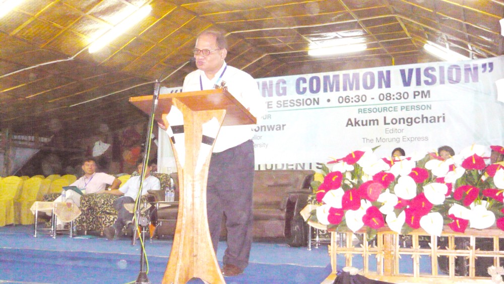 Professor B.K. Konwar, Vice Chancellor of Nagaland University, speaks at the ‘Interactive Session’ of the NSF’s 25th General Conference, being held in Dimapur from April 24-26.