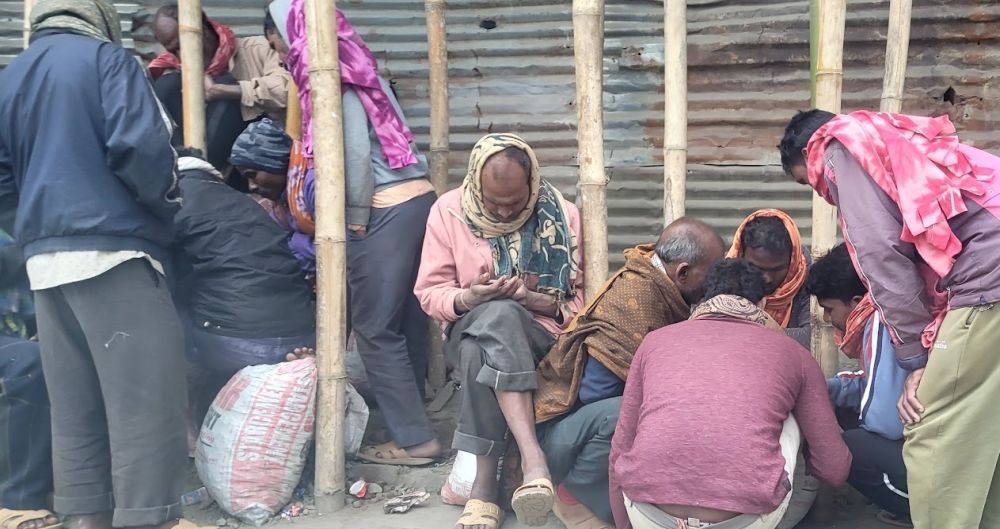 Nagaland 29th December 2024 Daily wage earners come together to play mobile games, as work appears to be slower during the festive season in Kohima, the state capital of Nagaland. (Morung Photo)