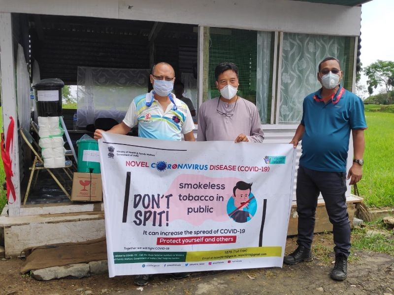 The District Tobacco Control Cell (DTCC) Mokokchung visited the Quarantine Center and Hospital at Impur Mission Center on June 11. A report from the Chief Medical Officer Office stated that the team raised awareness on spitting, smoking and chewing of Tobacco products by providing IEC posters at the quarantine centers for the inmates to paste in their respective rooms. Further, Dr Taliwaba, District Nodal Officer NTCP (National Tobacco Control Programme) Mokokchung, gave a briefing about ‘Tobacco use and its effects relating to COVID-19.’ The team provided 100 mosquito repellents, 50 tissue rolls and 5 dustbins for Quarantine Center use.
