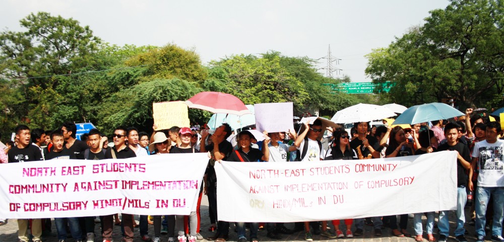 DIMAPUR, APRIL 10 (MExN): In view of the concerns expressed by the North East student community in Delhi over the compulsory courses on Hindi and MILs, the Pro Vice Chancellor of Delhi University today announced the University’s decision to address the issue. He addressed to a protesting crowd that the University has taken the decision to introduce a paper “literature in English” in lieu of Hindi, MIL, Arabic, Persian and Sanskrit under the foundation course.
