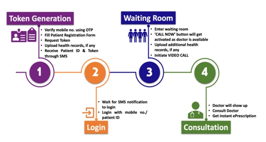 The Tele-Consultation platform has 2 modules. One is Community Health Officers (CHOs) to Doctor-to enable patient assisted consultations by the CHOs to the Doctors at the HWCs (eSanjeevani AB-HWC). Patients requiring treatment should visit the Health and Wellness Center-SC, whereby necessary examination and investigation will be done and tele-consultation can be initiated through the Community Health Officers.The other is Patient to Doctor which allows patients to consult doctors from the comfort of their homes (eSanjeevani OPD). For Patient to Doctor Consultation, the application can be accessed using the web page http://esanjeevaniopd.in. It can also be accessed by downloading the android/IOS based eSanjeevani OPD applicaton from Play Store.