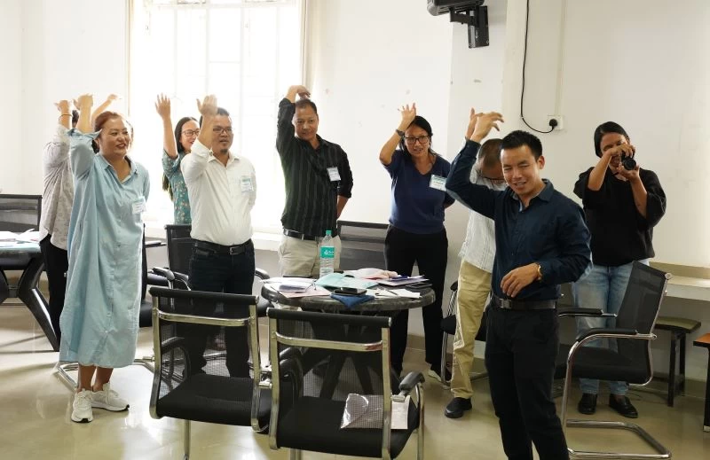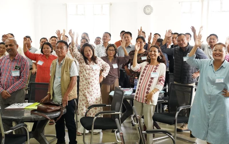Participants engaging in an activity at the School Leadership Development Programme at SIEMAT Hall in SCERT, Kohima on September 10.
