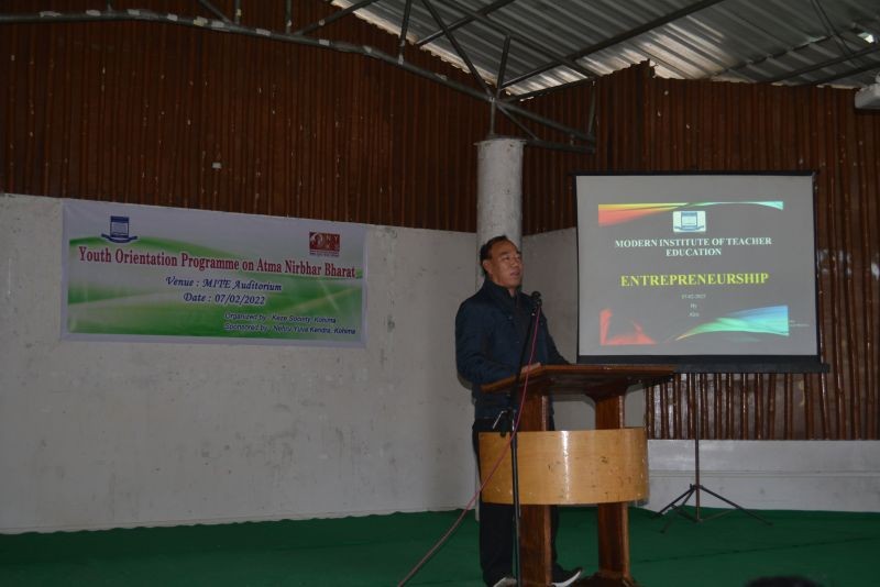 Kohima, February 7 (MExN): A youth orientation programme on ‘Atma Nirbhar Bharat’ was organized by Keze Society, Kohima, sponsored by the Nehru Yuva Kendra Sangathan (NYKS), Kohima at Modern Institute of Teacher Education, Kohima on February 7.