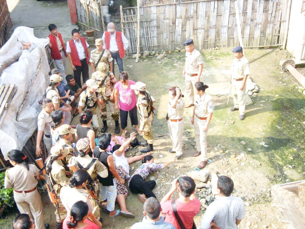 Women from the affected households remonstrate before police personnel and district administration officials during the eviction exercise carried out at Police colony, Dimapur on May 21. The households allege that the action of the district administration was arbitrary and illegal as the case pertaining to the eviction exercise is pending in court. The women were however taken away from the place and the eviction was carried out.