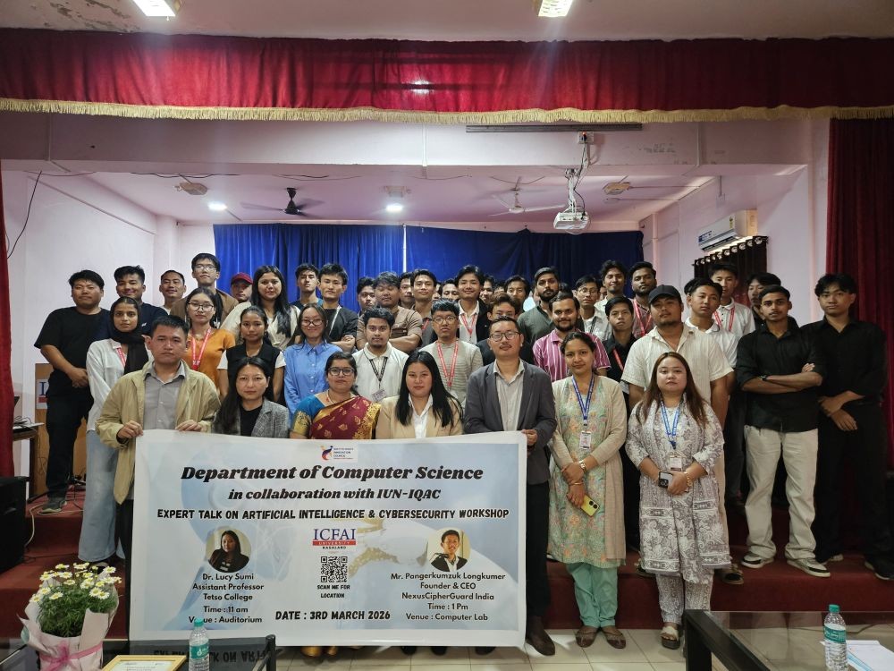 Dimapur, March 4 (MExN): The Computer Science Department of The ICFAI University Nagaland, in collaboration with its Internal Quality Assurance Cell (IQAC) and Institution’s Innovation Council (IIC), organised an expert talk on Artificial Intelligence and a cybersecurity workshop on March 3.
