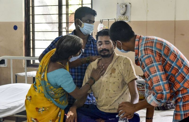 A Black Fungus infected patient at Mucormycosis ward of government ENT hospital in Hyderabad on May 19, 2021. (PTI Photo)