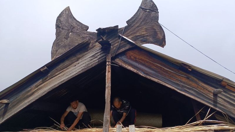 Father and son weaving a bamboo mat in Zhavame village, Phek district. The mats are used for drying paddy and other food products. This is a reflection of how craft skills are passed down from one generation to the next. (Photo Courtesy: Rosou Pohena)