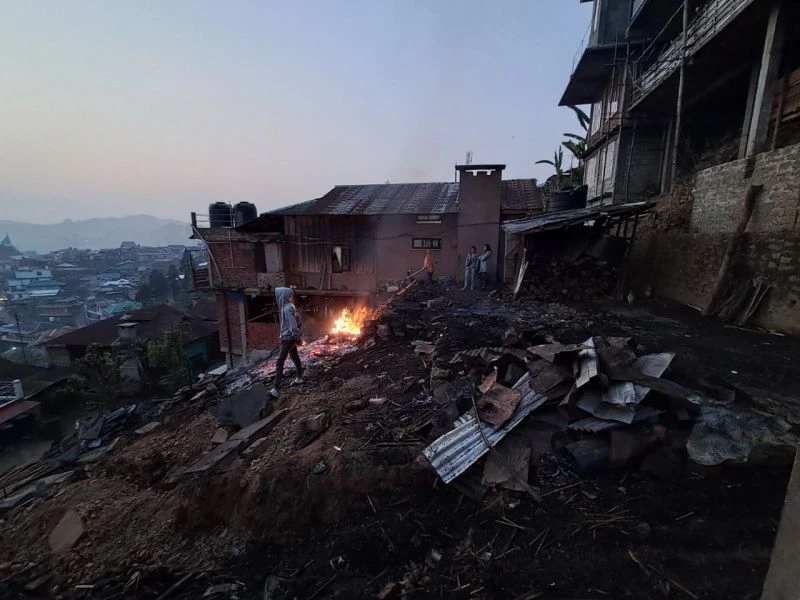 A fire broke out at Aonglenden, Ungma village, at around 9 am today, completely destroying one house and causing partial damage to two nearby structures. No casualties have been reported.