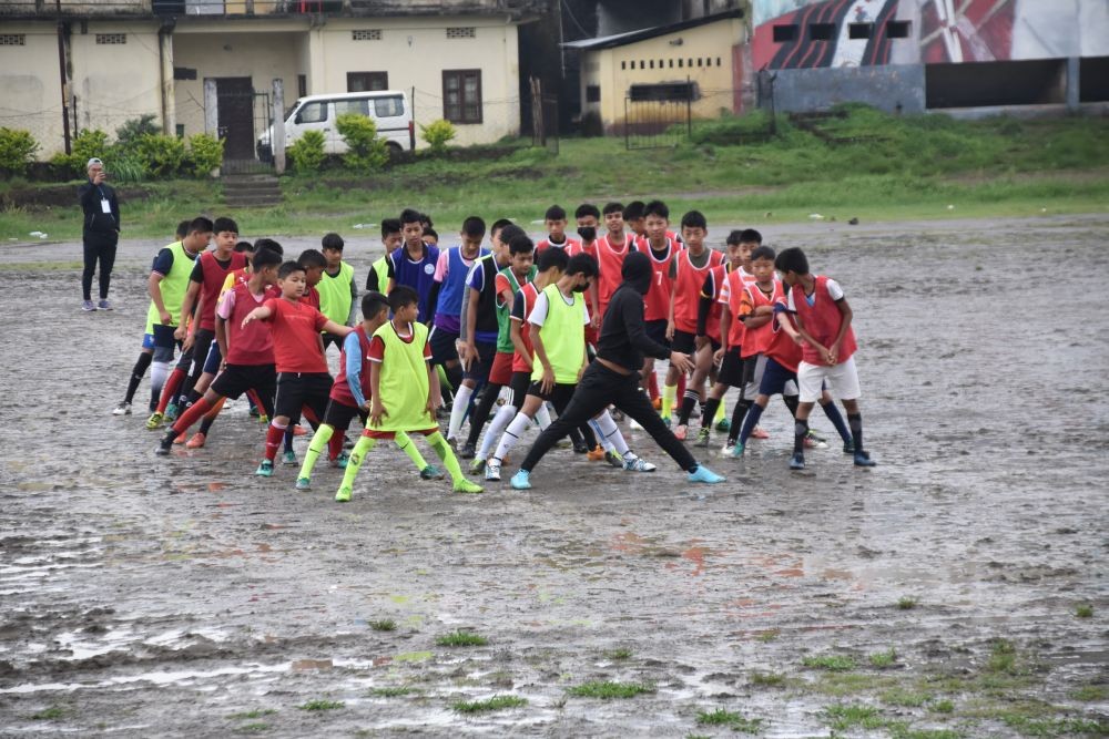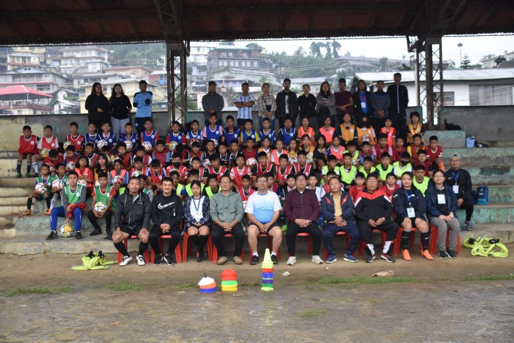 The Mokokchung Town Baptist Church Youth Department, under the aegis of the MDFA is conducting a Football Coaching Clinic for the age of 10 to 14 years from June 19 to July 9, 2023 at the Imkongmeren Sports Complex. A total of 105 participants (19 females and 86 males) have registered and are taking part in the Football Coaching clinic. The participants are trained by 12 AIFF “D” license-certified coaches. Seen in the picture are the participants at the training camp.