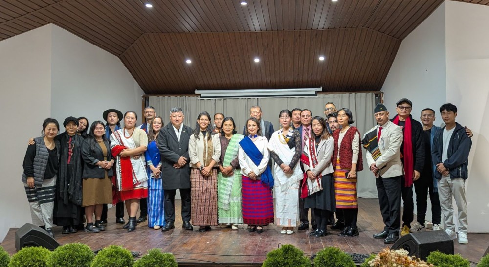 Chief Guest, Abu Metha, Advisor to Chief Minister of Nagaland, Guests of Honour, Lt. General Vikas Lakhera, AVSM, SM, Director General, Assam Rifles & Abeni TCK, Author & Designer, seen with participants during the programme on ‘Weaves of Empathy’ held at Hotel Vivor on November 22.