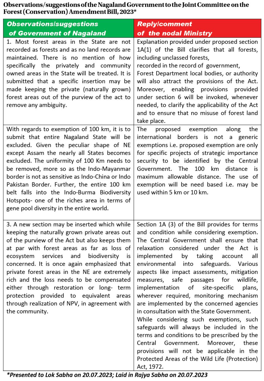 As inferred from the report of the Joint Parliamentary Committee on Forest (Conservation) Amendment Bill, 2023, which was submitted to the Parliament on July 20, suggestions/recommendations from stakeholders, including the Northeastern states likely to feel the biggest impact of the amendment, were largely ignored and countermanded by the Union Ministry of Forests, Environment and Climate Change (MoFECC).
