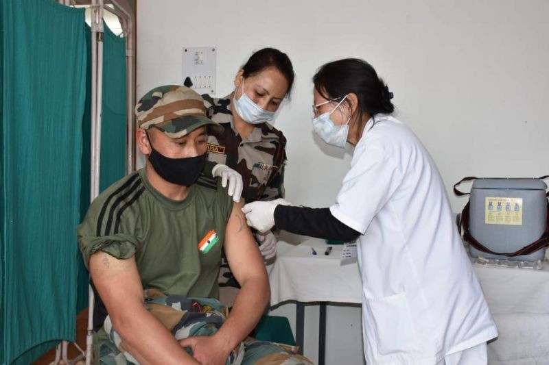 Nagaland 12th February 2021 Frontline workers receiving COVID vaccine at IGAR HQ and 93 BN BSF Chedema session sites under Kohima district on February 12. (DIPR Photo)