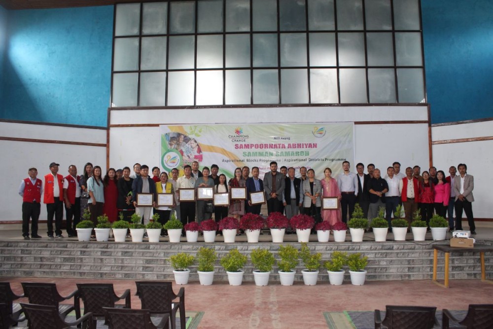 As part of the Sampoornata Abhiyan, several block officials and frontline workers were felicitated. These included District Soil Conservation Officer; Junito K. Zhimomi, CDPO; Nikuto Chishi, CDPO; Dr Gihuka V. Chishi, Medical Officer; Gokheli, Block Programme Manager of NSRLM; Mugholi Jakhalu, Community Health Officer of Lokobomi; Tolika Z. Katty, Anganwadi worker; Nishili, Anganwadi worker from Naghuto village; Avini Yeptho, SHG from Vekuho New Village.