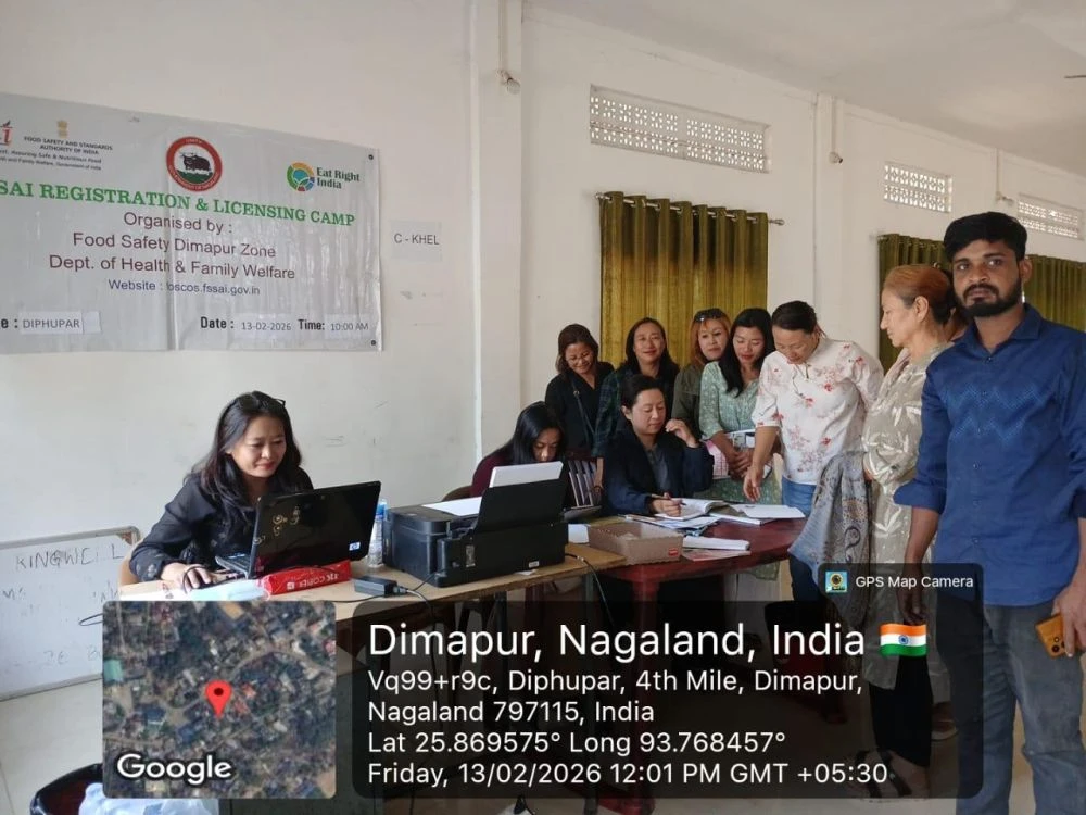 A statement issued by the FSA, Dimapur Zone, informed that the initiative, aimed at bringing local Food Business Operators (FBOs) and community groups into compliance with FSSAI norms, began on February 12 at Diphupar A and B, where online licensing and registration camps are being conducted through the FoSCoS portal.