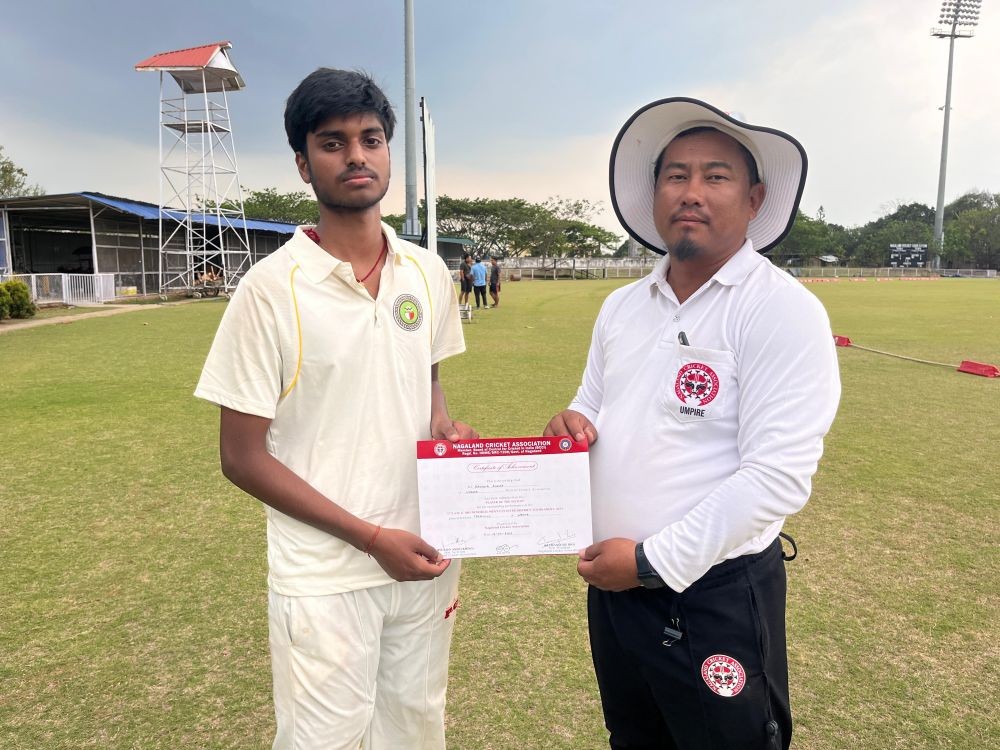 Krishna Kumar of Wokha was named Player of the Match for his 4/17 performance against Tseminyu in the 5th Late G. Rio Memorial Men’s U19 Inter-District Cricket Tournament on April 16 at Nagaland Cricket Stadium, Chümoukedima.