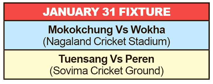 In their previous Poll-B match on January 29, Wokha defeated Peren by 38 runs, after setting a target of 179 runs and bundled out the latter for 141 runs in 33.4 over.