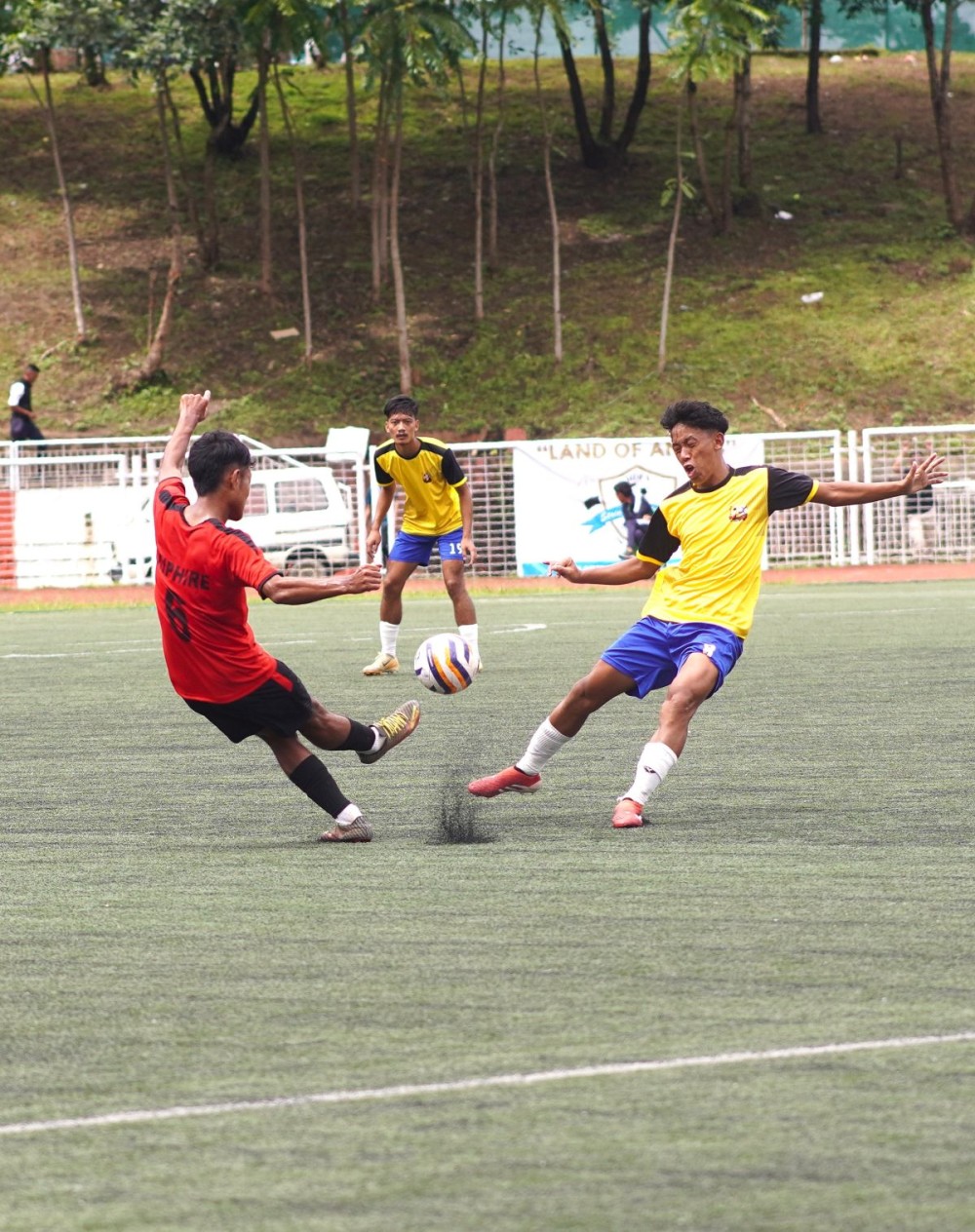 Niuland struck first in the 15th minute when Kakhevi (No. 7) found the net, setting the tone for a fierce contest. In the 38th minute, Toka (No. 10) doubled Niuland’s advantage with a composed strike, sending their supporters into frenzy. Tuensang struck back immediately after the halftime break — Ayemnongba (No. 7) scored in the 44th minute, breathing new life into the contest and taking his tally to eight goals, making him the current tournament top scorer.