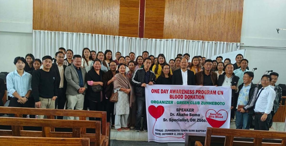 ZUNHEBOTO, OCTOBER 4 (MExN): The Green Club Zunheboto organised a one-day awareness programme on blood donation at the Zunheboto Town Sumi Baptist Church, under the theme "Save Life, Give Blood" on October 2.