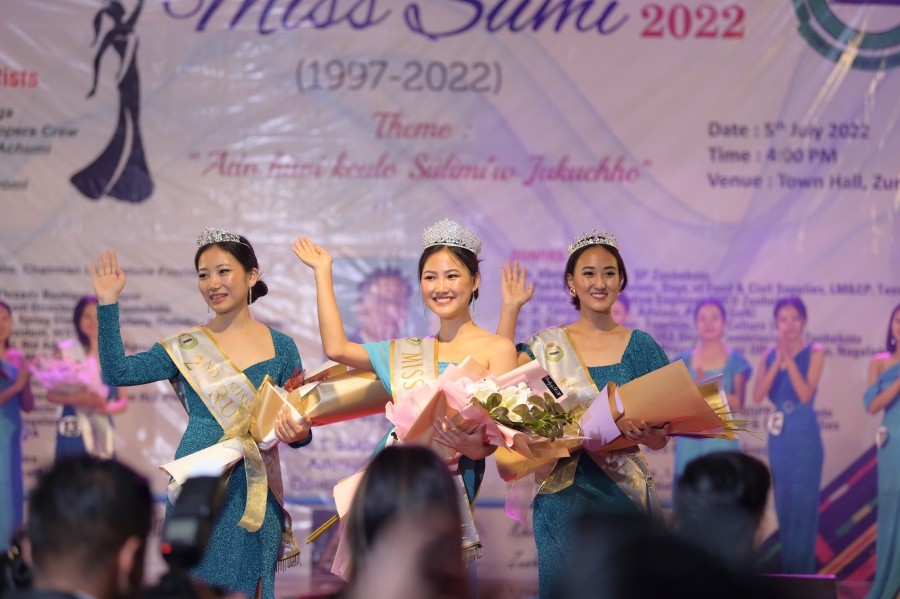 Zunheboto, July 6 (MExN): Hikali Achumi was crowned Miss Sumi 2022, while Linovi P Kiba bagged the First Runner-Up title, and Niloli Wotsa won the title of Second Runner-Up during a glamorous ceremony at Town Hall, Zunheboto on July 5.