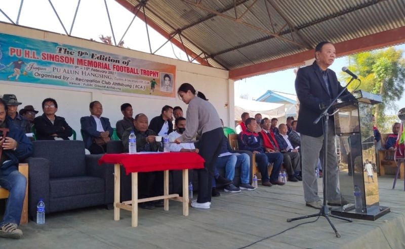 PEREN, FEBRUARY 11 (MExN): The weeklong 9th edition of the HL Singson Memorial Football Tournament 2021, organised by Recreation Club Ahthibung (RCA) began at Public Ground, Ahthibung Town in Peren district on February 9. Commissioner & Secretary, YR&S, Alun Hangsing was the special guest. He was accompanied by officers of the YR&S Department and the SDO(C) Ahthibung, Alemyapang, who was also the chief host of the event. The opening match saw NMT Ahthibung defeat KYSU Medziphema by 2 goals.