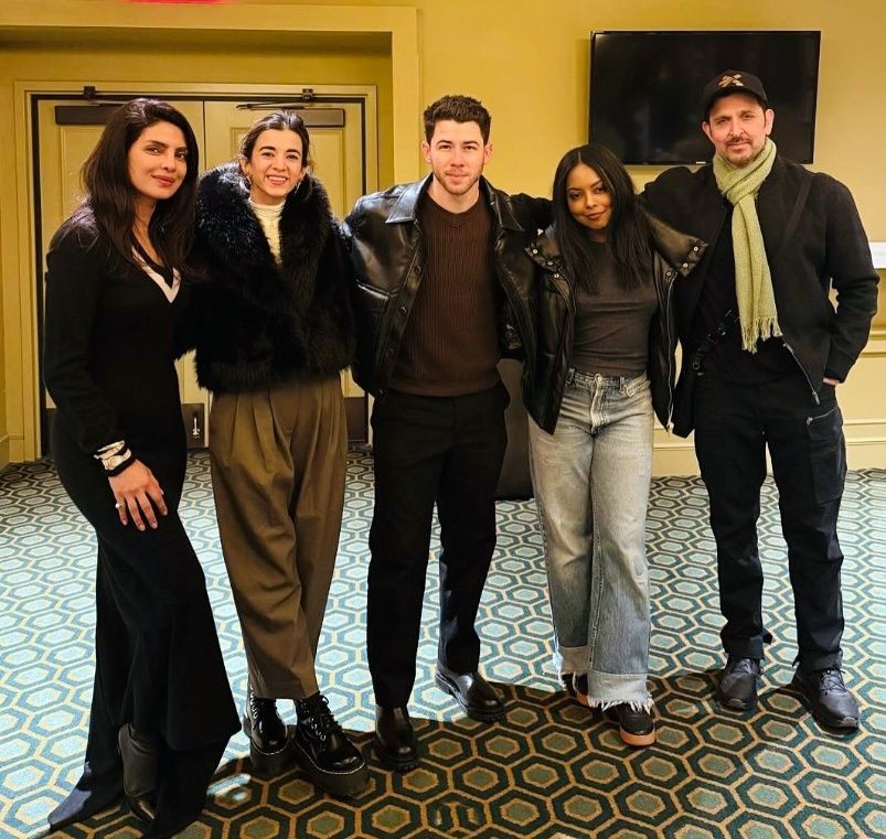 Hrithik attended Nick’s play along with his girlfriend, Saba Azaad, and actress Priyanka. He even shared a picture on Instagram posing with Saba, Priyanka, Nick, actress Adrienne Warren, and director Whitney White.