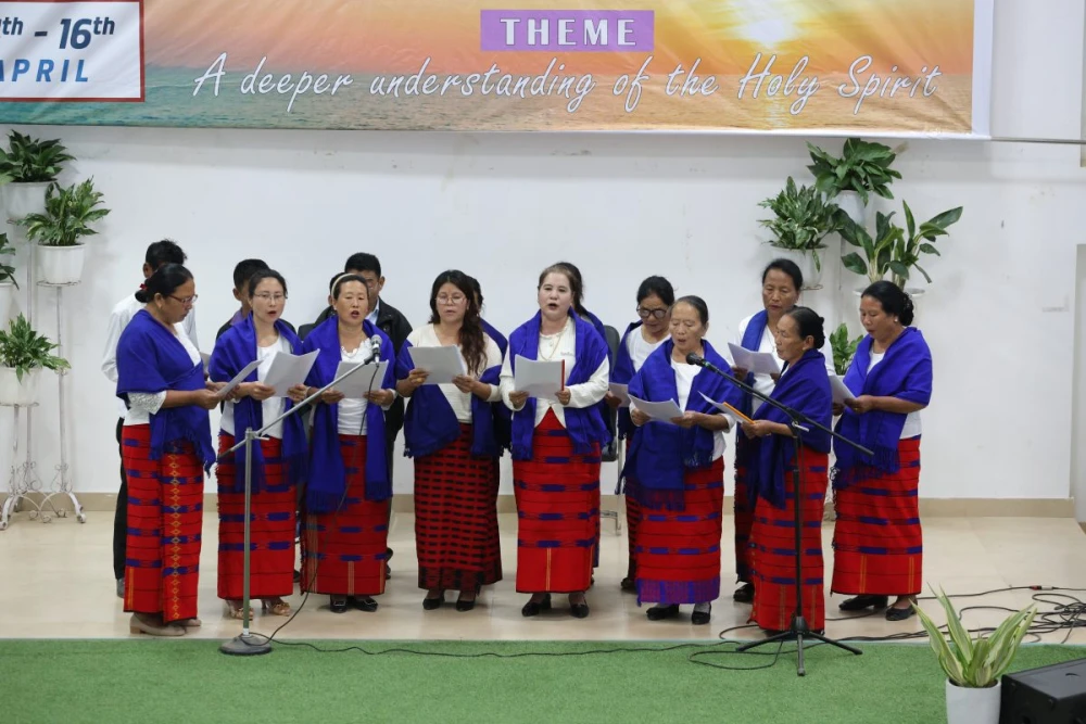 Members of Ungma IEF unit presents a special song during the inaugural night of the three-day IEF 2026 General Revival Crusade in Mokokchung on April 14. (Photo courtesy: Gajen Rai)