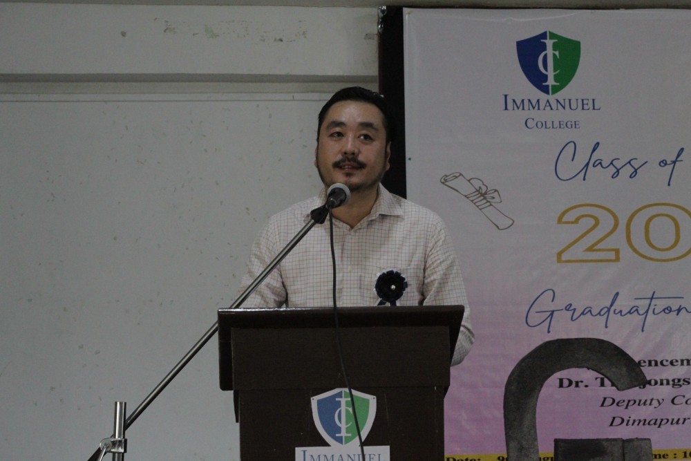 The highlight of the ceremony was the graduation speeches by the top performers, including Avitoli Muru, B.Sc. Zoology Gold Medalist, M Yeanglem Konyak, B.Sc. Botany Topper, and others. Graduation certificates were then presented by Th. Sharatchandra Singh, Principal of Immanuel College. The event concluded with a vote of thanks by Daisy Odyuo, followed by a benediction by Ngipsho M Konyak. Earlier, the programme was chaired by Gwesy Michuing, Assistant Professor, Department of English.