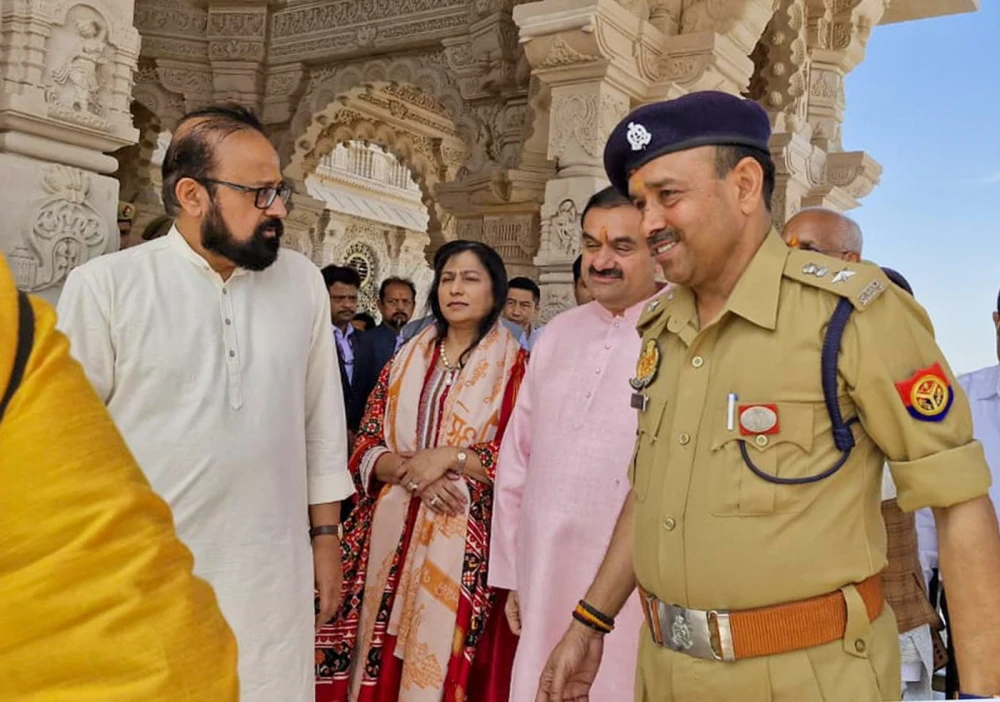 Ayodhya, April 2 (IANS) Gautam Adani, Chairman of the Adani Group, visited Ayodhya for a darshan with his wife Dr Priti Adani, elder son Karan Adani and daughter-in-law Paridhi Adani, to offer prayers and pay respects at the Shri Ram Temple, before proceeding to Shri Nishulk Gurukul Mahavidyalaya for an institutional interaction.
