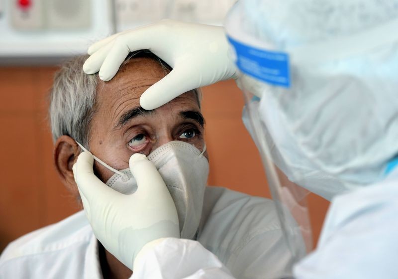 A doctor examines a COVID-19 patient for black fungus infection at the Government Institute of Medical Sciences, in Greater Noida, Uttar Pradesh on May 25, 2021. (PTI Photo)