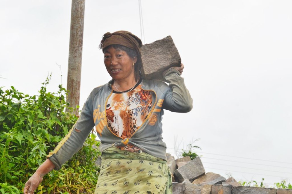 For Nganyü Theresa from Laii village, it is a normal affair to carry mud, sand, brick, stones; mix cement, sand and water, or even build retaining walls but there is nothing else she would rather be doing.