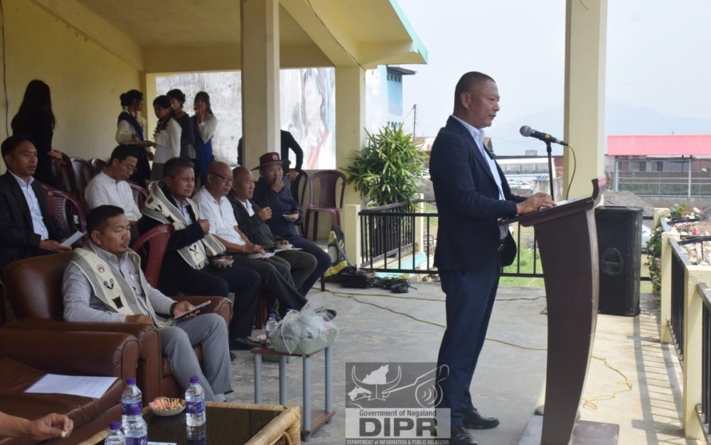 Dr Kekhriehoulie Yhome, Advisor for School Education & SCERT addresses the inaugural programme of the Inter-District GHSS & GHS Tournament 2026 at Imkongmeren Sports Complex, Mokokchung, on April 14. (DIPR Photo)