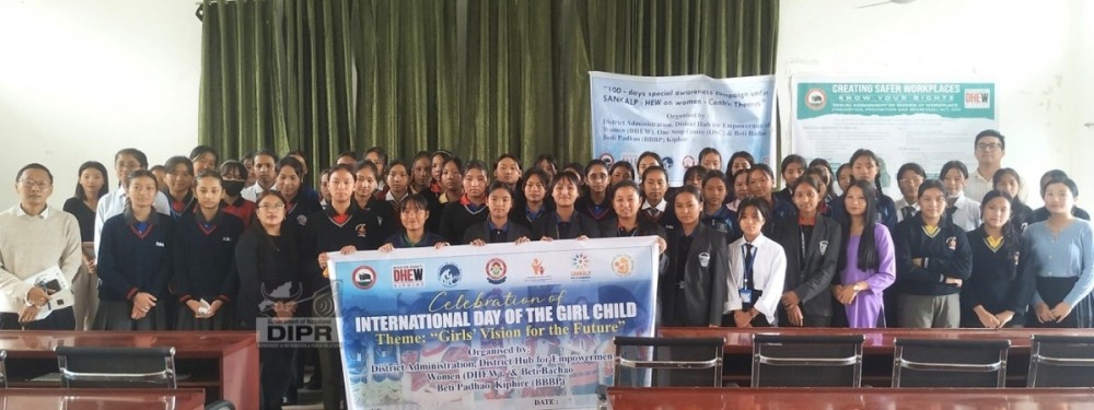 KIPHIRE, OCTOBER 4 (MExN): The International Day of the Girl Child was observed on October 3 at the DPDB Hall in Kiphire, with EAC Takatemjen Pongon as the special guest. The event was organized by the District Administration, the District Hub for Empowerment of Women (DHEW), and the Beti Bachao Beti Padhao (BBBP) initiative under the theme “Girls' Vision for Future.”