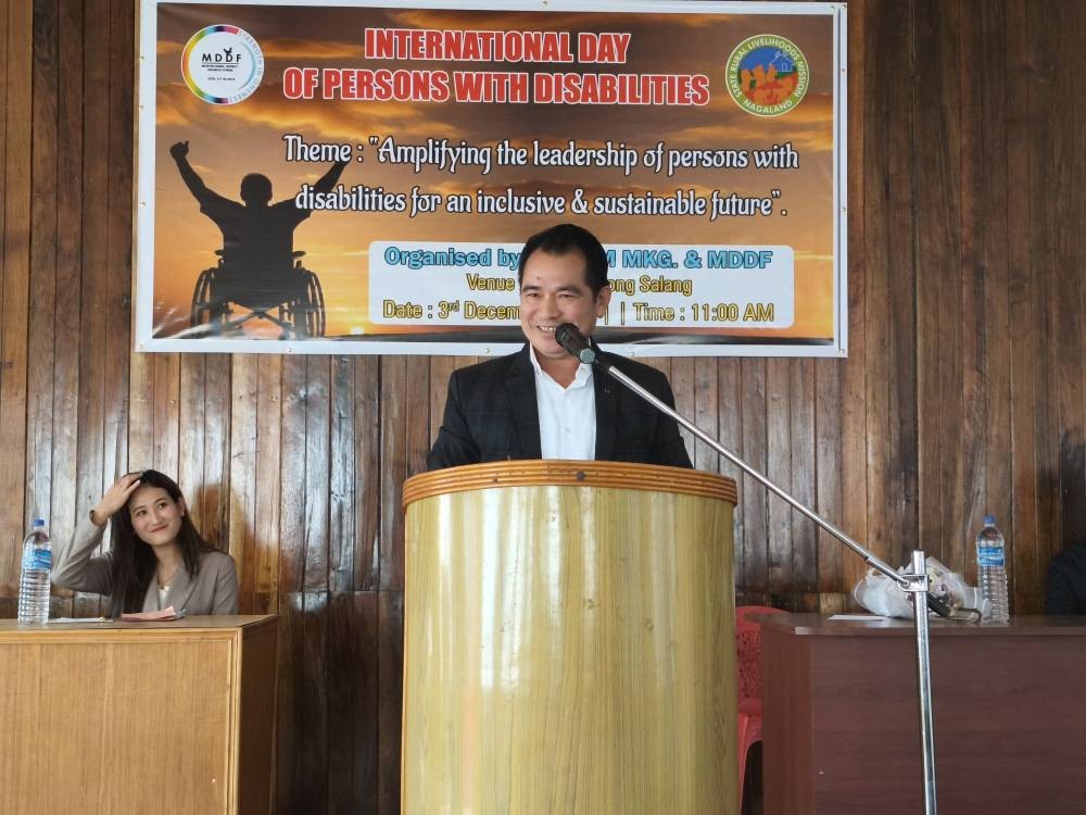 Maong Jamir while addressing at the International Day of Persons with disabilities at Opangkong Salang, Mokokchung on December 3.