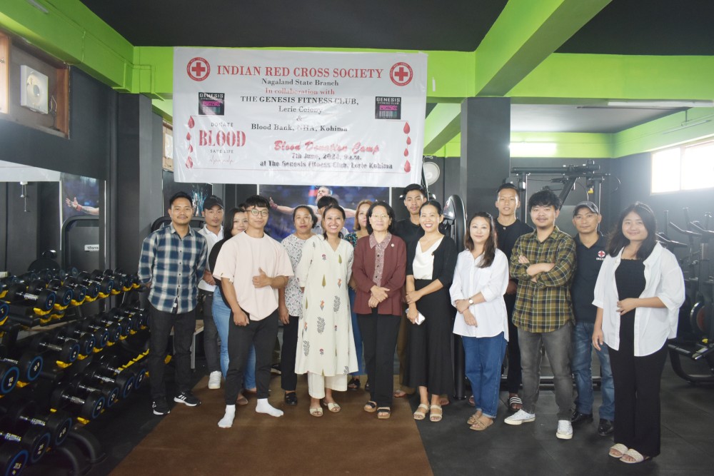 Kohima, June 7 (MExN): The Indian Red Cross Society (IRCS) Nagaland State Branch in collaboration with The Genesis Fitness Club, Lerie Colony and the Blood Bank, NHA, Kohima organised a blood donation camp at The Genesis Fitness Club, Lerie Kohima on June 7.