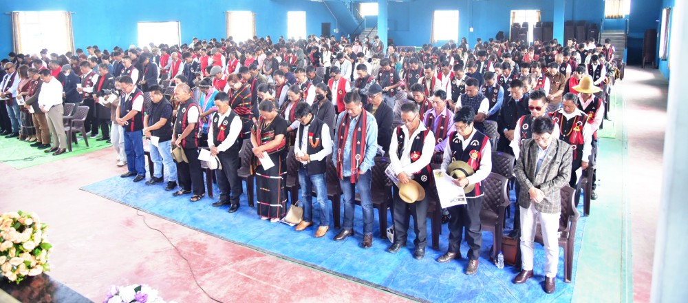 Participants observe a moment of silence during the observation of Isak Chishi Swu’s 8th death anniversary on June 28 in Zunheboto.