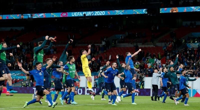 London, July 7 (IANS): Italy qualified for the final of the European Championships after beating Spain in a dramatic penalty shootout at Wembley after 120 minutes of football had ended 1-1.