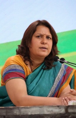Shrinate criticised EAM Jaishankar's statement that India being a smaller economy can't go and fight bigger economy and termed it "blasphemous".